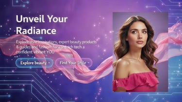 "The visual assets featured within the sections, e.g., Beauty & Fashion of this website are proprietary creative works developed using advanced artificial intelligence (AI) synthesis.