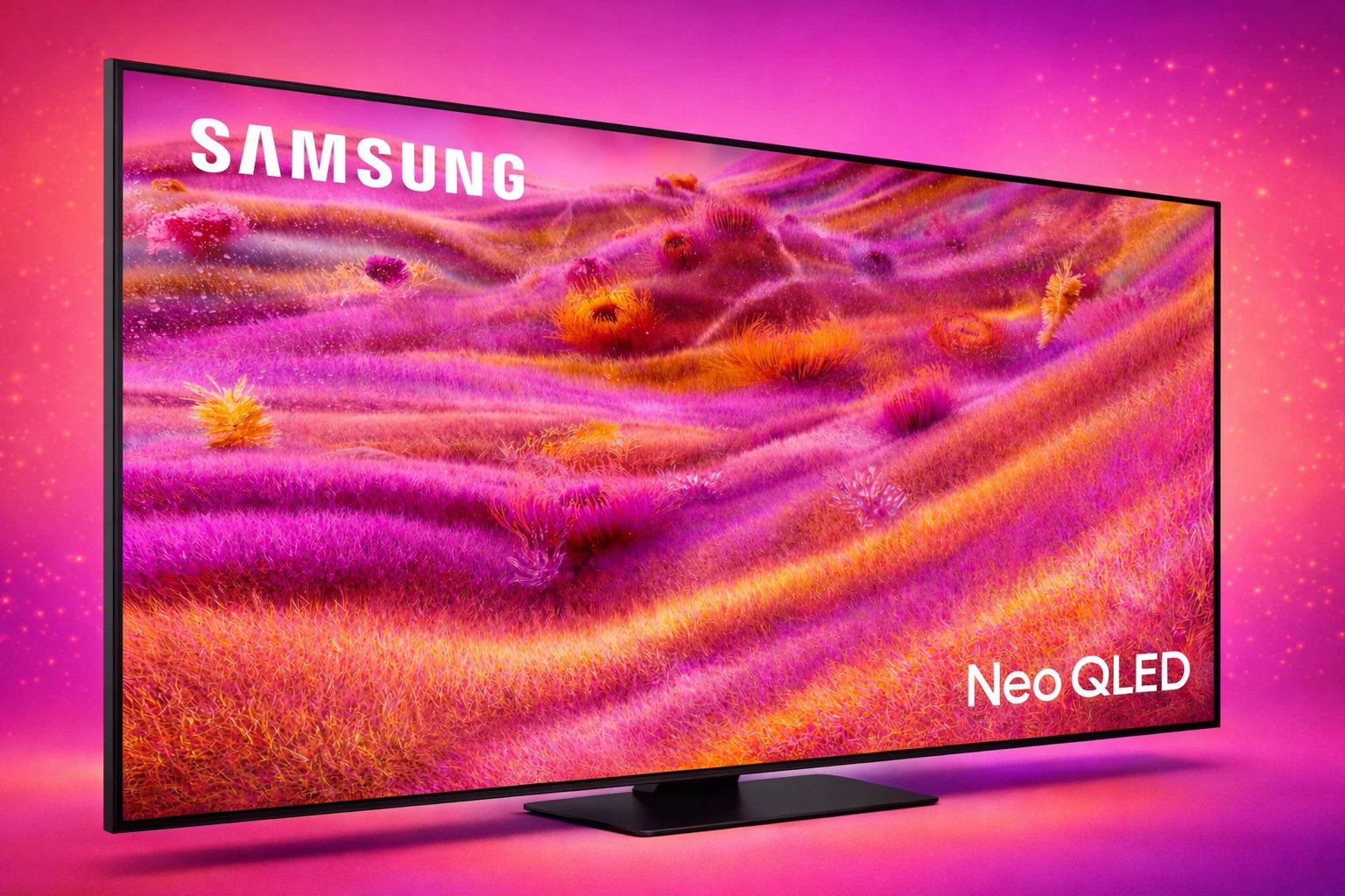 The Vibe: Samsung’s NeoSlim Design ensures the TV is almost as thin as an OLED from the side. It feels incredibly premium, with a heavy, hexagonal plate stand that minimizes wobble. The bezel is virtually non-existent, creating an "all-picture" experience that feels like a window into another world.